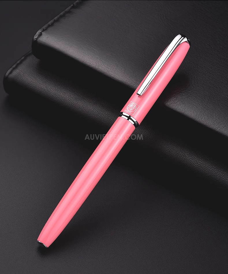 có thân bút màu hồng nhạt, cài bút màu bạc nữ tính và quyến rũ.