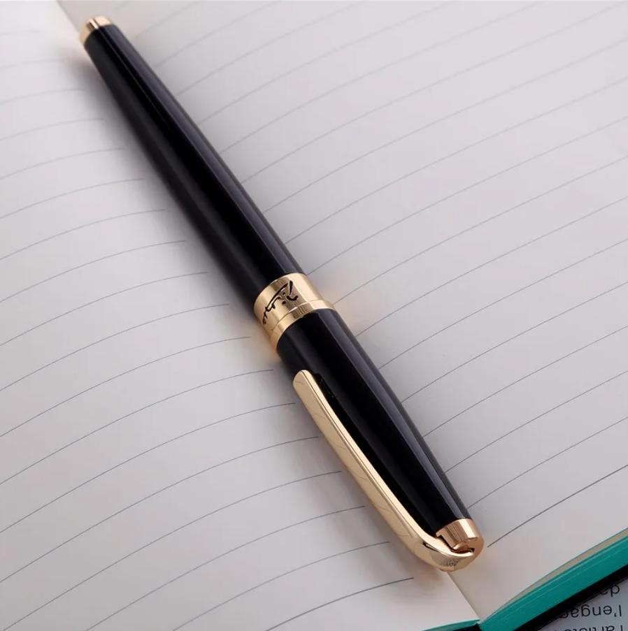 được làm từ kim loại cao cấp, mạ toàn thân màu đen, cài bút màu vàng sang trọng, đẳng cấp.