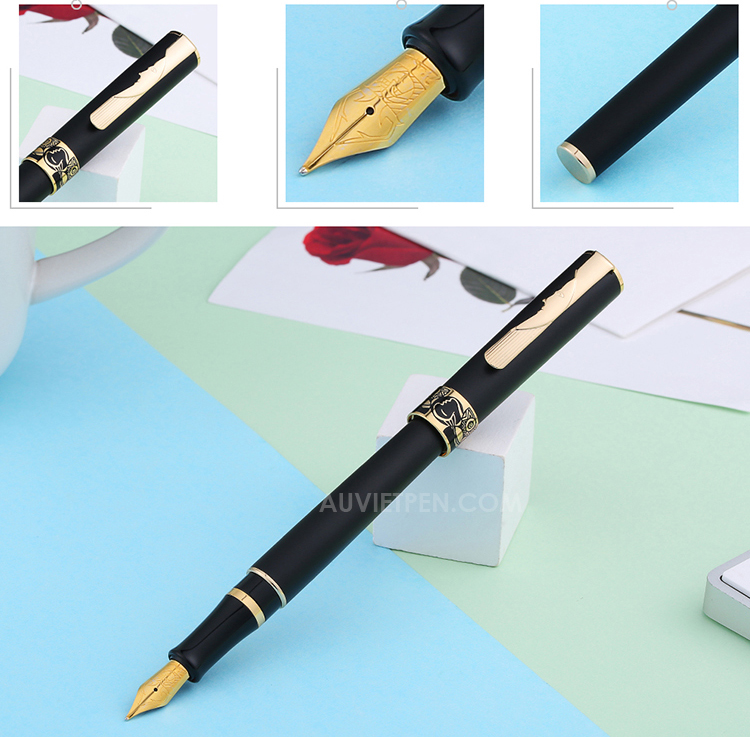 mạ toàn thân màu đen, cài bút màu vàng sang trọng, quý phái.